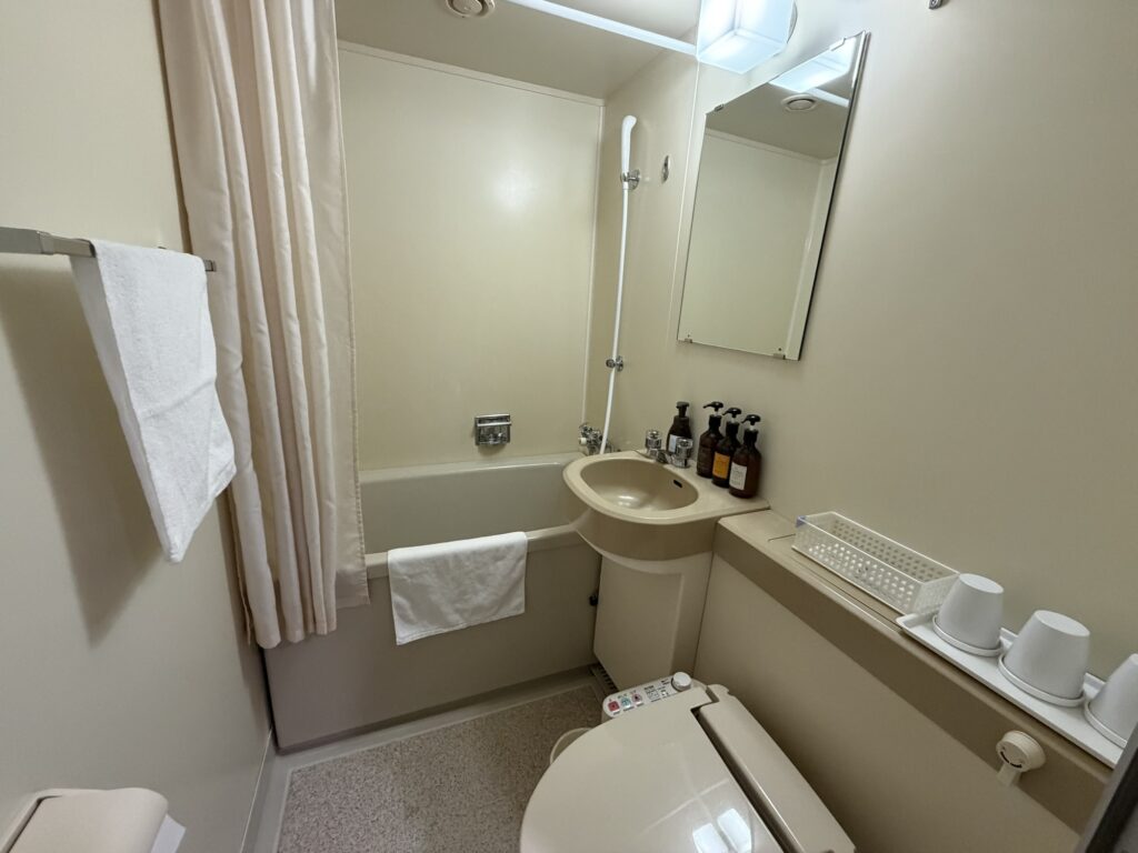 こちらは、ビジネスホテルなどでもよく見かけるスタンダードな3点ユニットバス(バス・トイレ・洗面台)タイプでした。