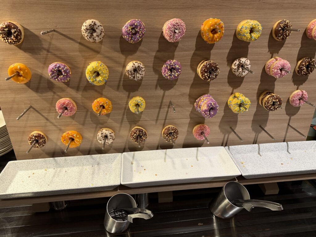 一際目を引くのが、このカラフルなドーナツボード(ドーナツウォール)です。
