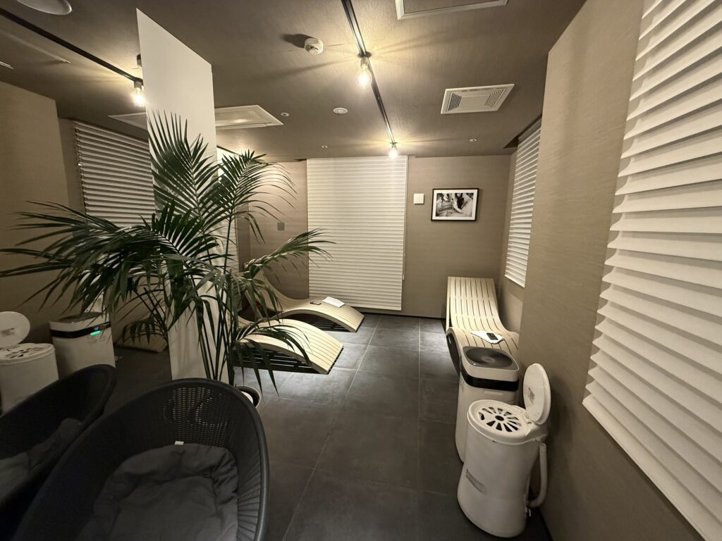 サウナから出たらオロポ飲みながら、リクライニングチェアで内気浴。