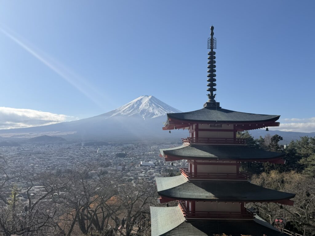 特に新倉山浅間公園(新倉神社)から見る「五重塔越しにそびえる富士山」は、今や世界中の旅行者が憧れる日本を代表する風景です。