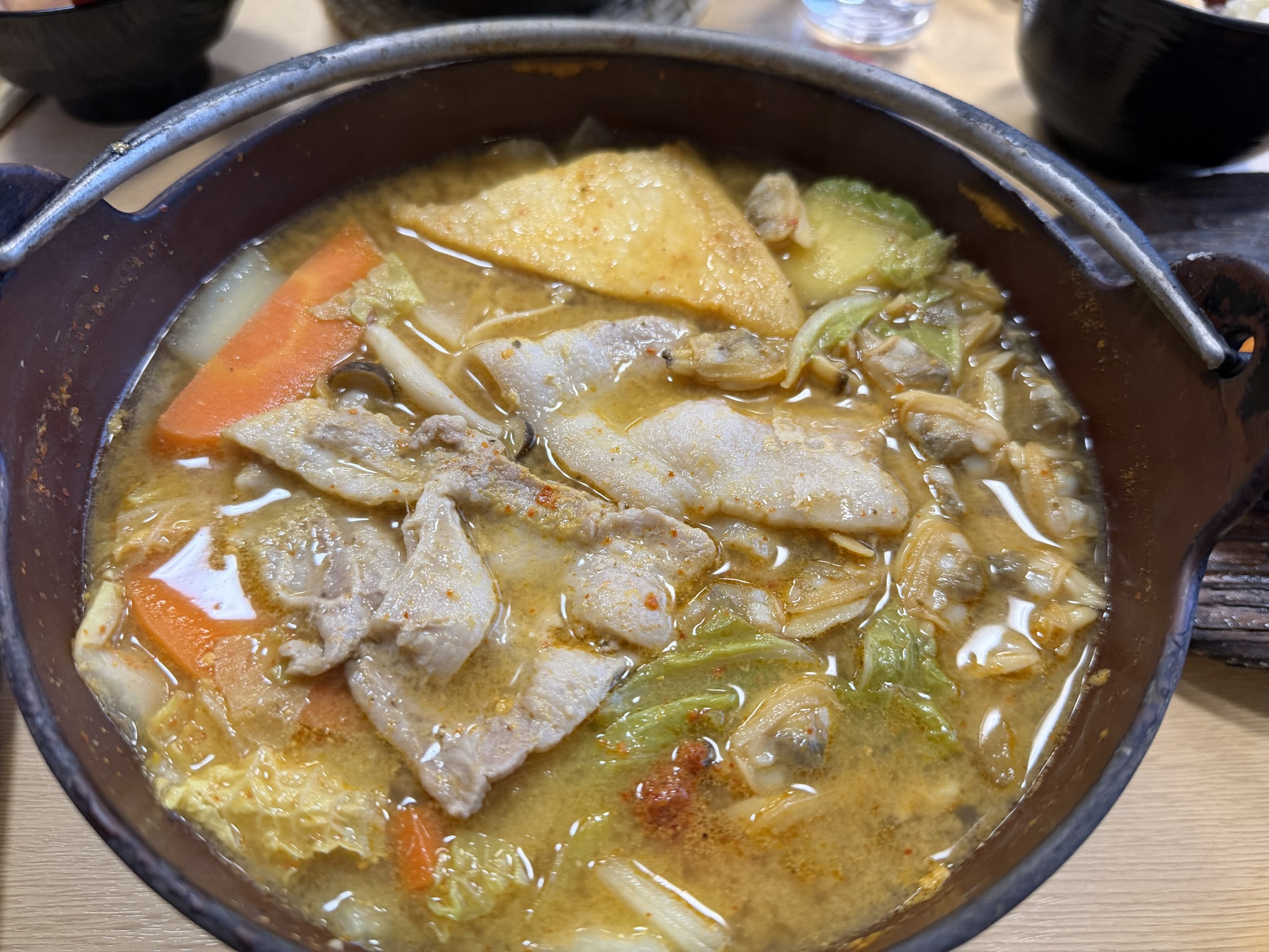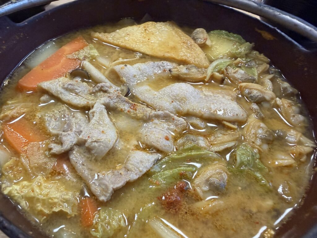 開店と同時に入店し、11:30頃にはアツアツの「黄金ほうとう」がテーブルに!