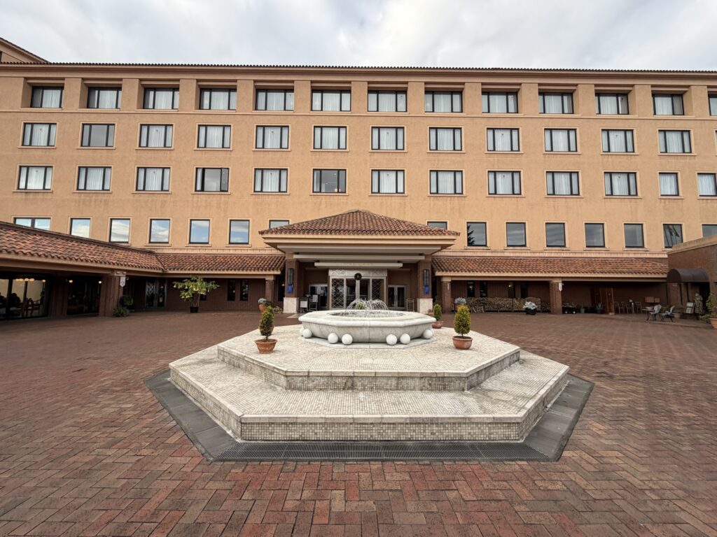 車を停めて一歩入れば、老舗ホテルならではの涼やかで落ち着いた空間が広がります。